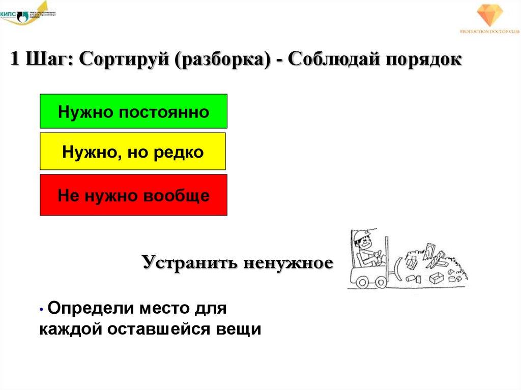 1 Шаг: Сортируй (разборка) - Соблюдай порядокНужно постоянно