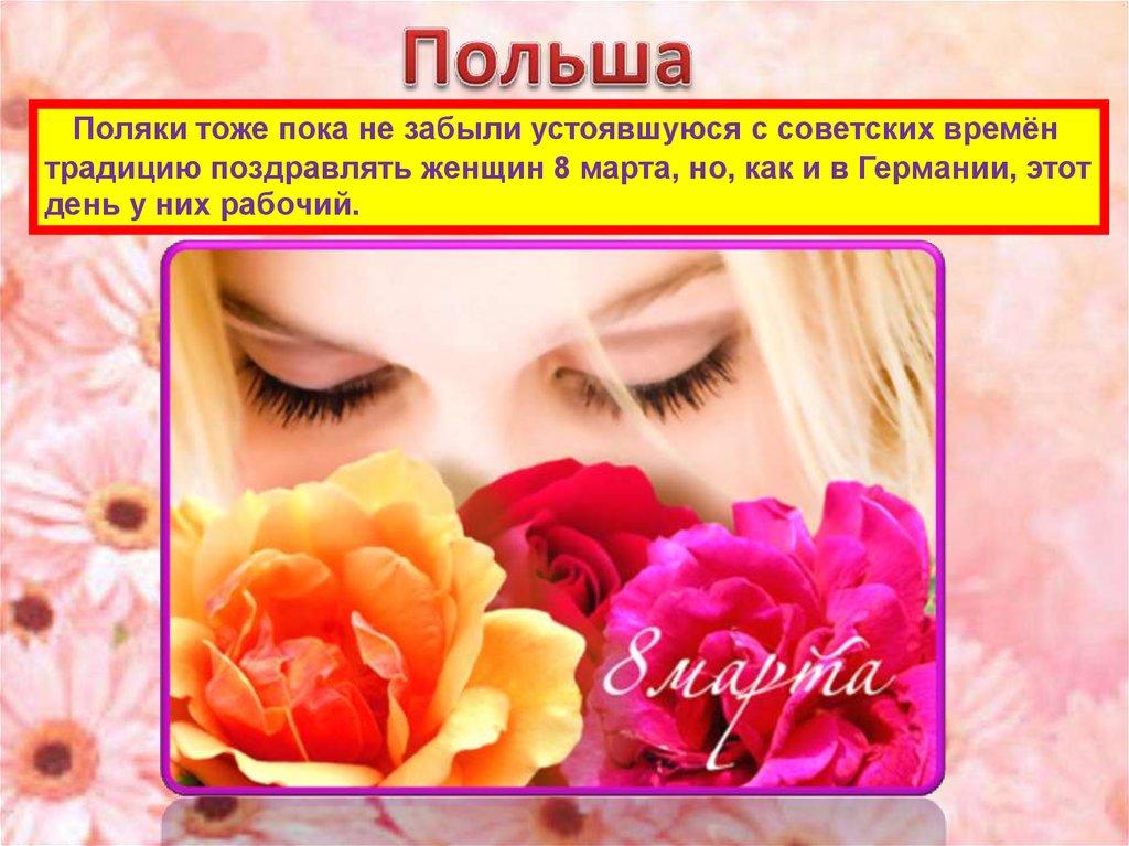 Поляки тоже пока не забыли устоявшуюся с советских времёнтрадицию поздравлять женщин 8 марта, но, как и в Германии, этот