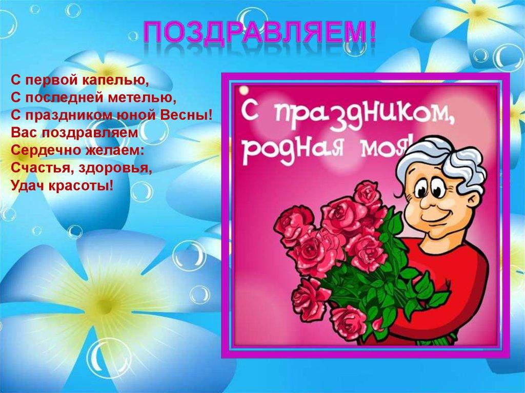 Очень скоро все мы встретимЖенский праздник и Весну.
