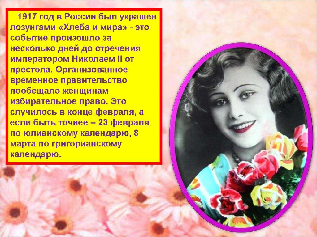 Советская власть объявила 8 марта государственнымпраздником, который с 1965 года стал выходным днем. В этот