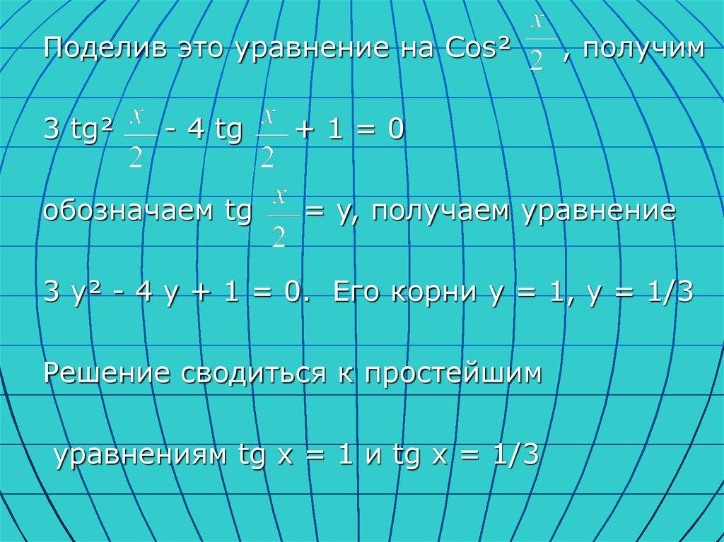 2 Sin x – 3 Cos x = 0Поделив уравнение на Cos x,