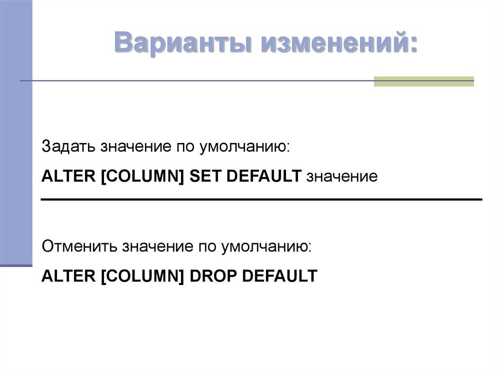[ DEFAULT выражение ] [ ограничения_столбца ],