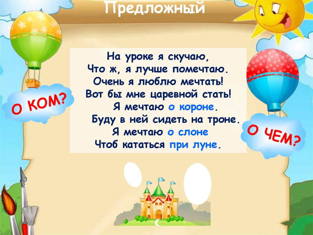 ПредложныйНа уроке я скучаю,