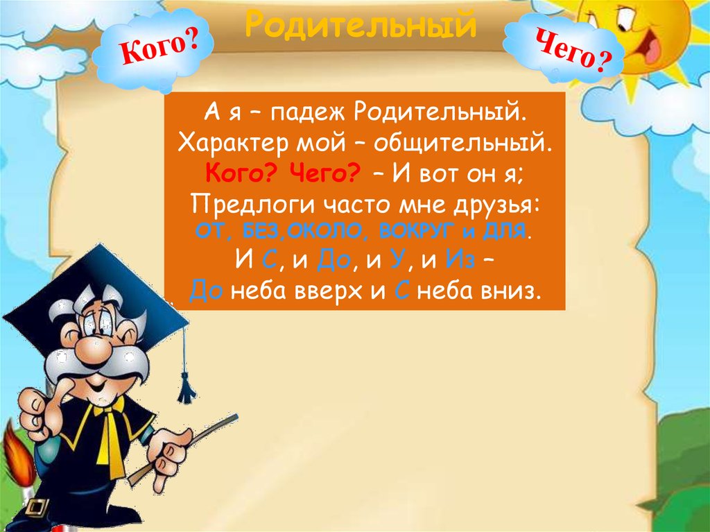 ОТ, БЕЗ,ОКОЛО, ВОКРУГ и ДЛЯ.