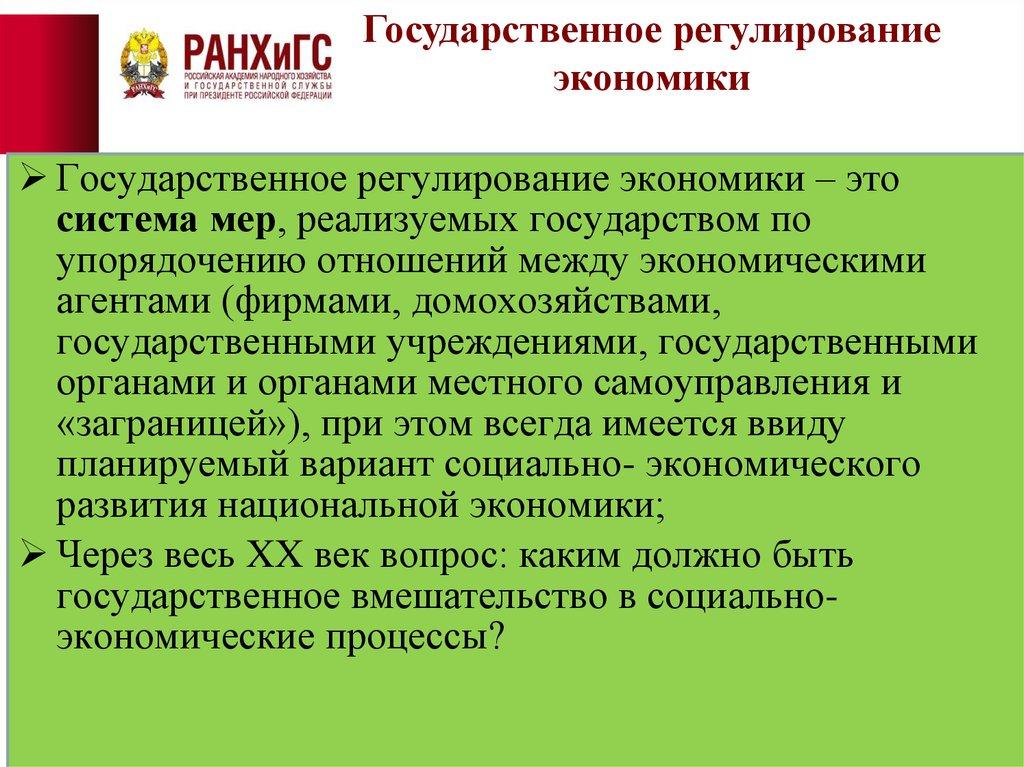 Государственное регулирование экономики