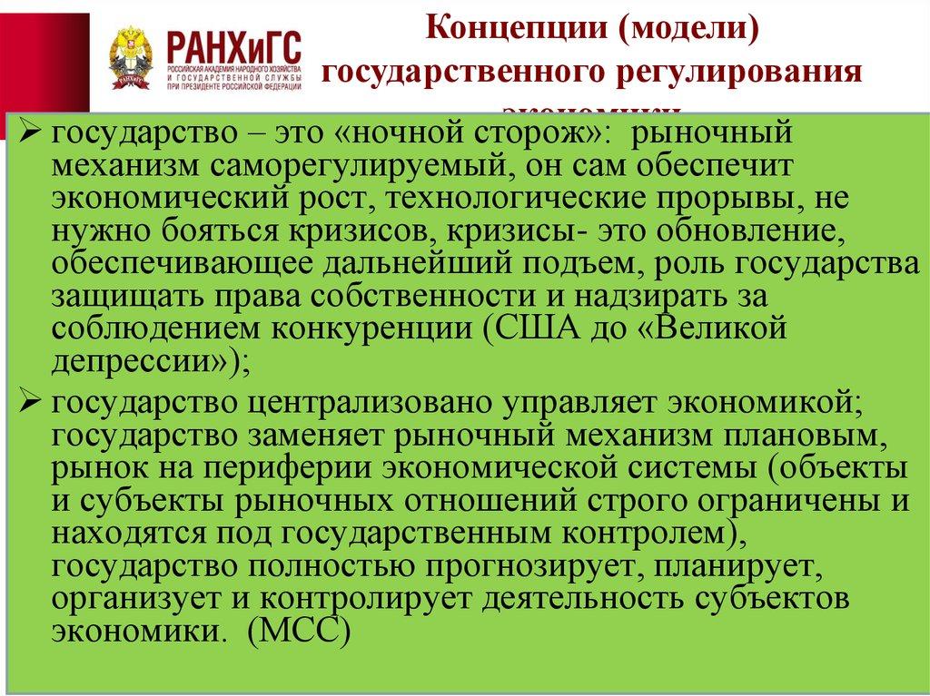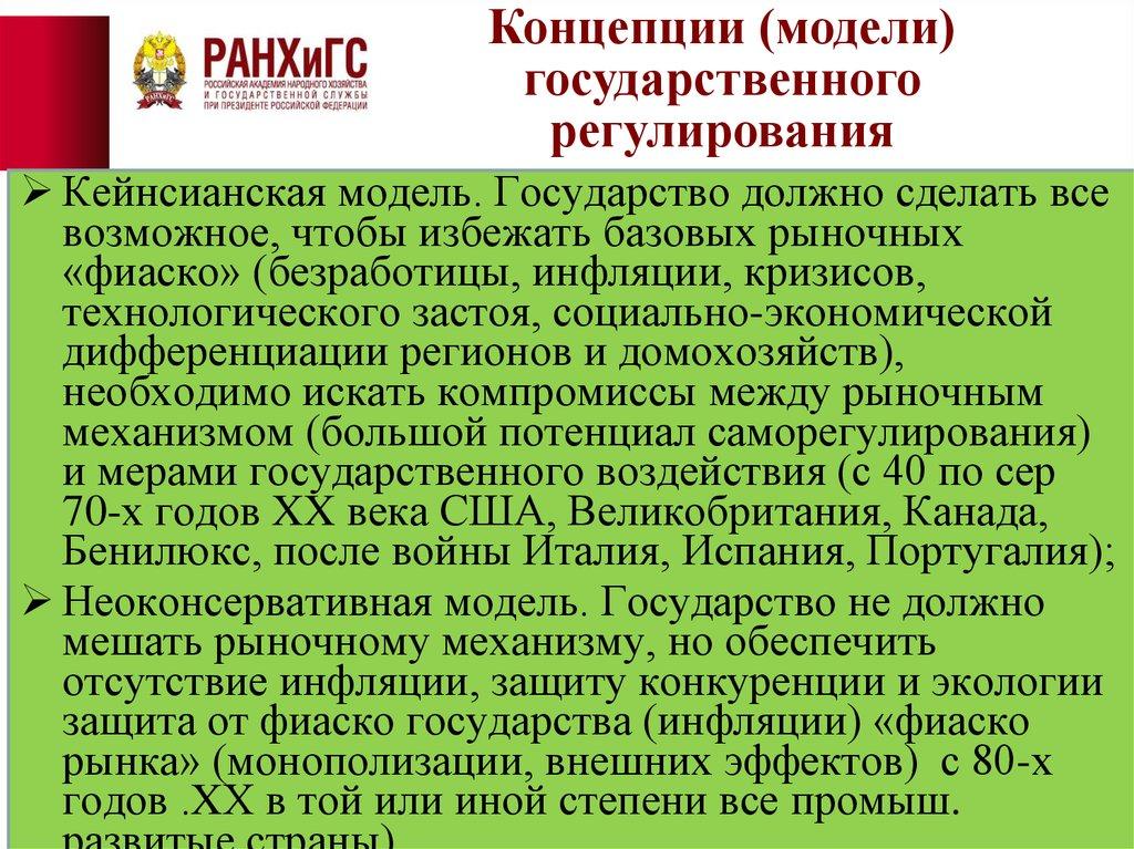 Концепции (модели)государственного регулирования