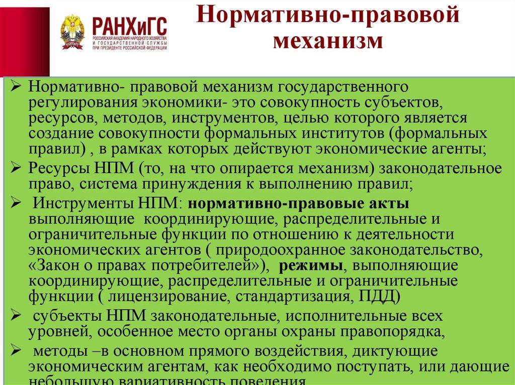 функционирования экономики; правопорядка,