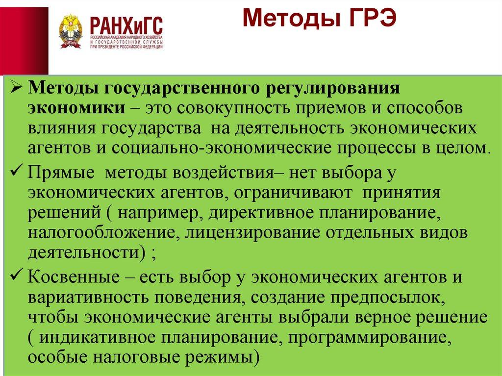 Методы ГРЭМетоды государственного регулирования