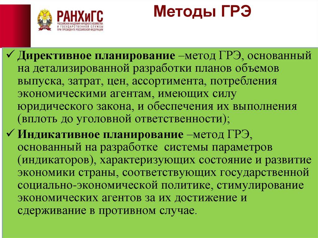 Индикативное планирование –метод ГРЭ,