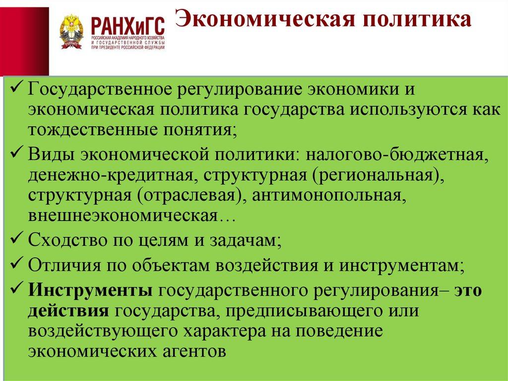 Экономическая политикаГосударственное регулирование экономики и