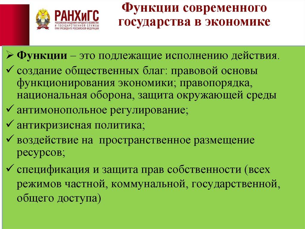 Функции современногогосударства в экономике