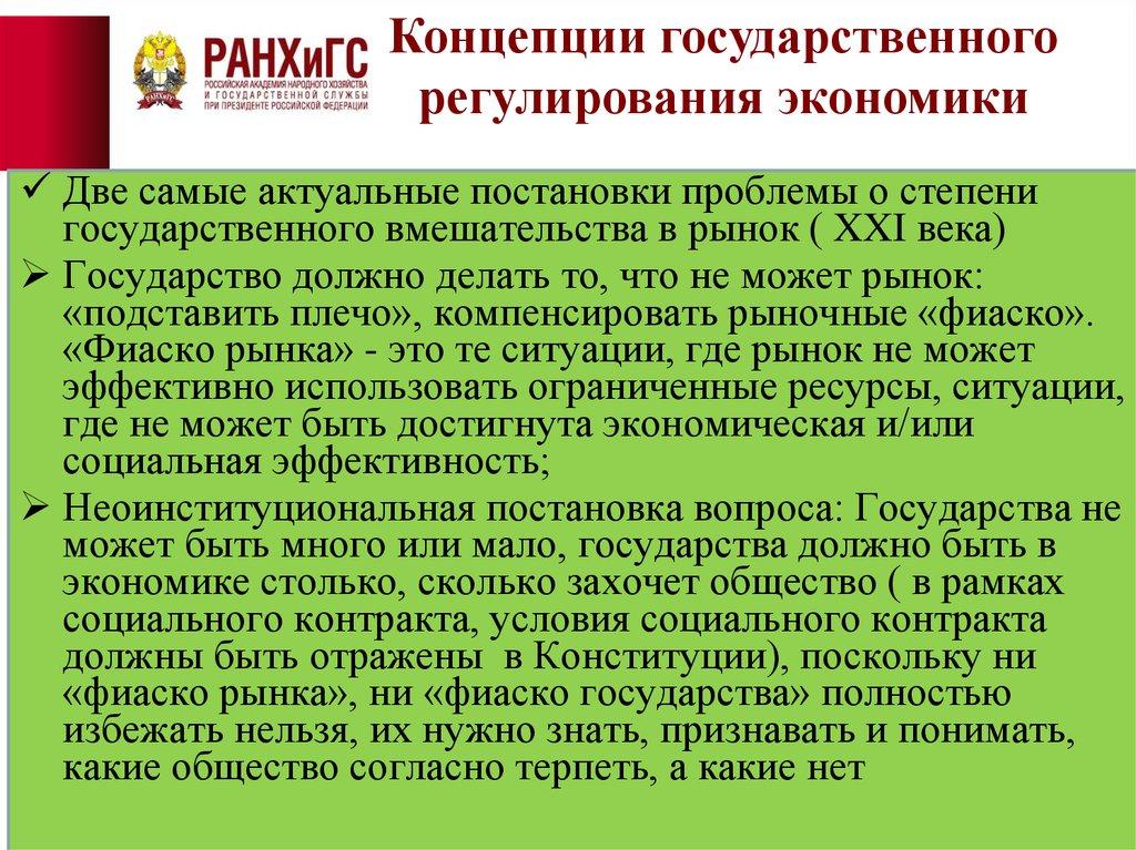 государственного вмешательства в рынок ( XXI века)