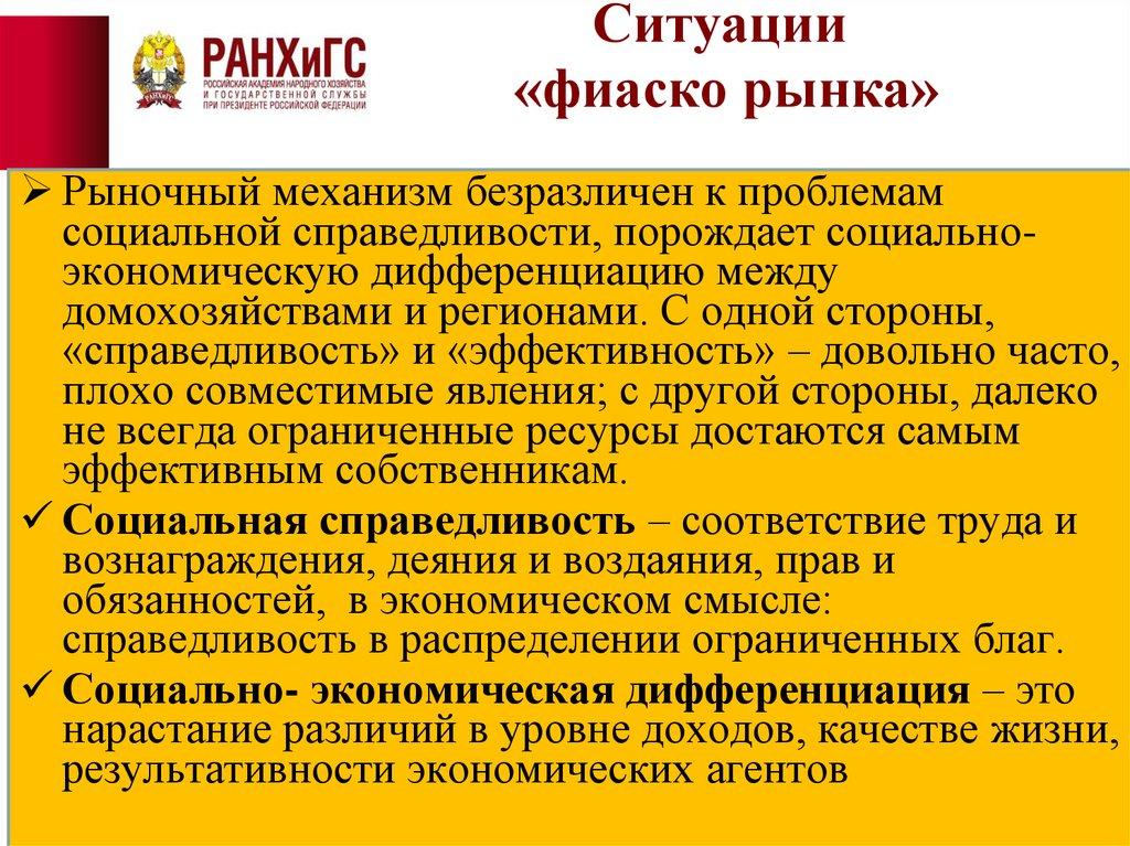 «Фиаско рынка» - это те ситуации, где рынок не может