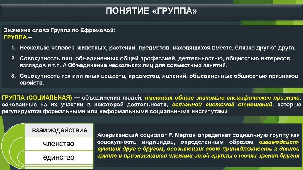 ПОНЯТИЕ «ГРУППА»Значение слова Группа по Ефремовой: