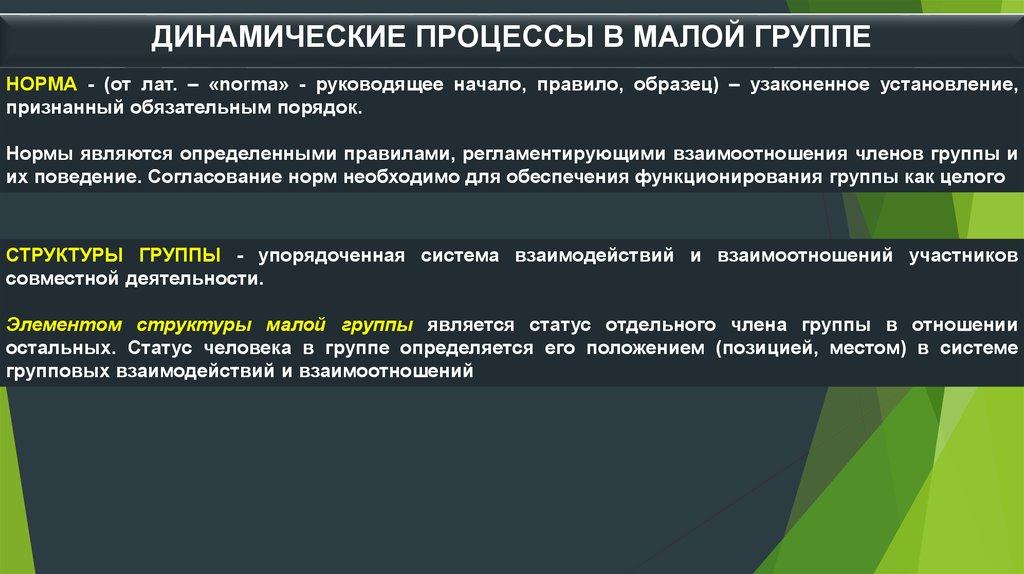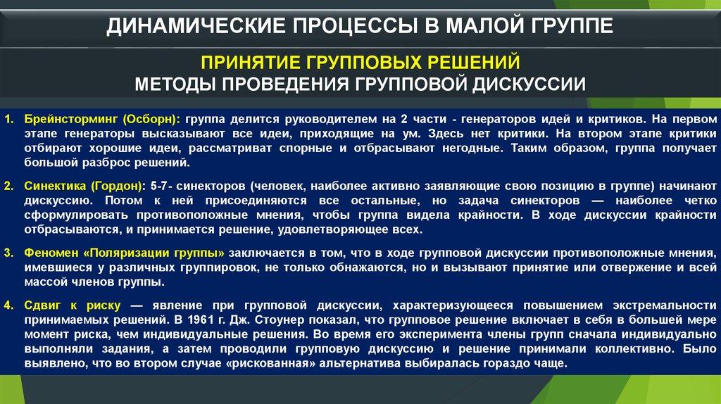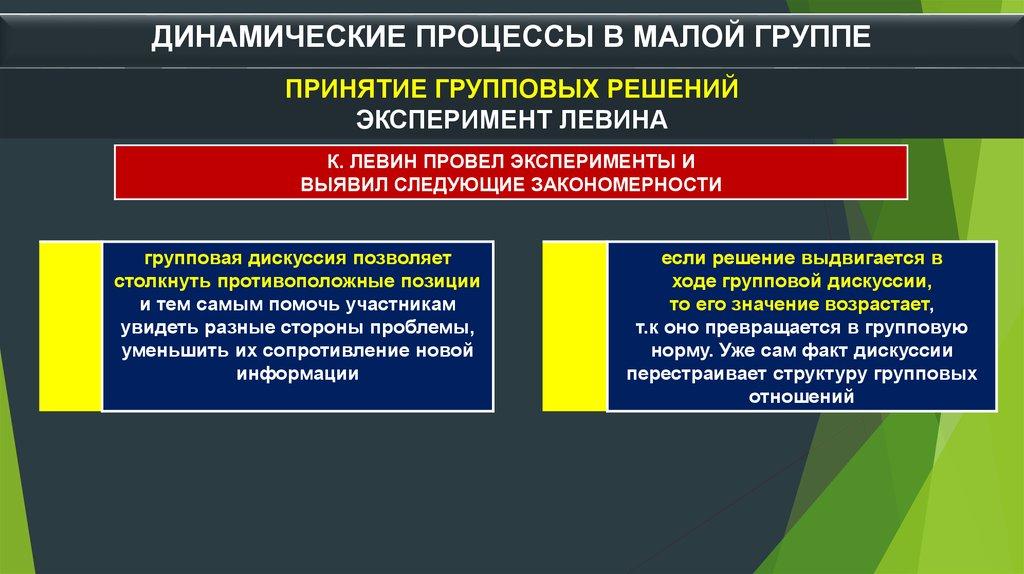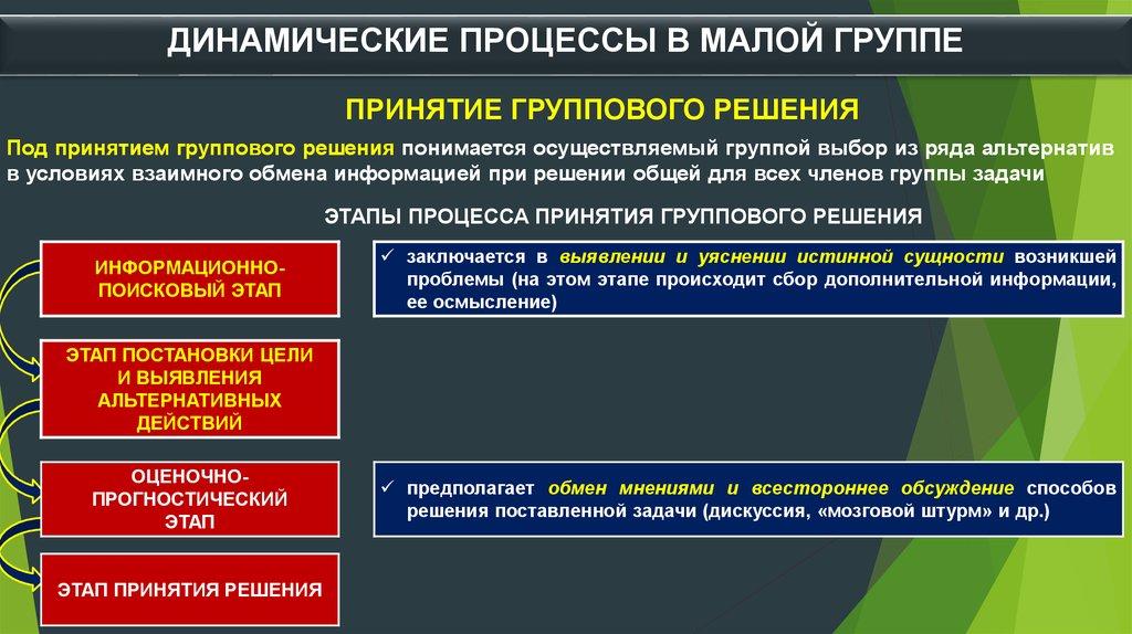 ДИНАМИЧЕСКИЕ ПРОЦЕССЫ В МАЛОЙ ГРУППЕПРИНЯТИЕ ГРУППОВЫХ РЕШЕНИЙ