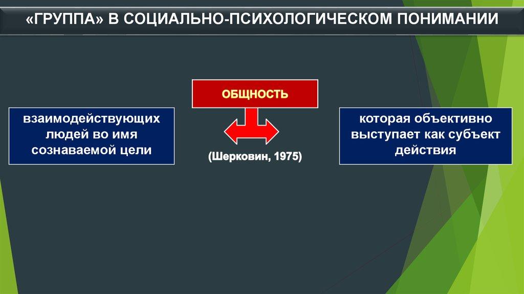 «ГРУППА» В СОЦИАЛЬНО-ПСИХОЛОГИЧЕСКОМ ПОНИМАНИИвзаимодействующих