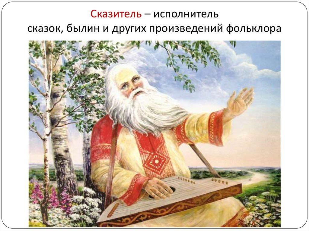 Сказитель – исполнитель сказок, былин и других произведений фольклора