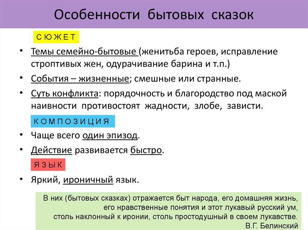 В них (бытовых сказках) отражается быт народа, его домашняя жизнь,