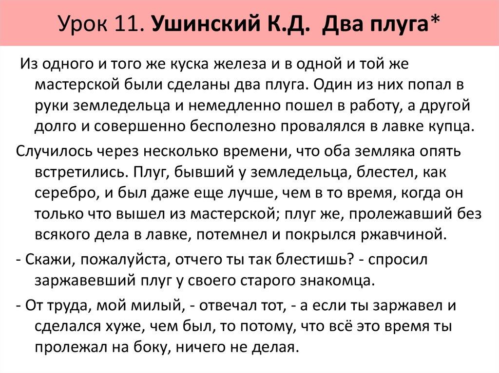 73. Урок 11. Ушинский К.Д. Два плуга*