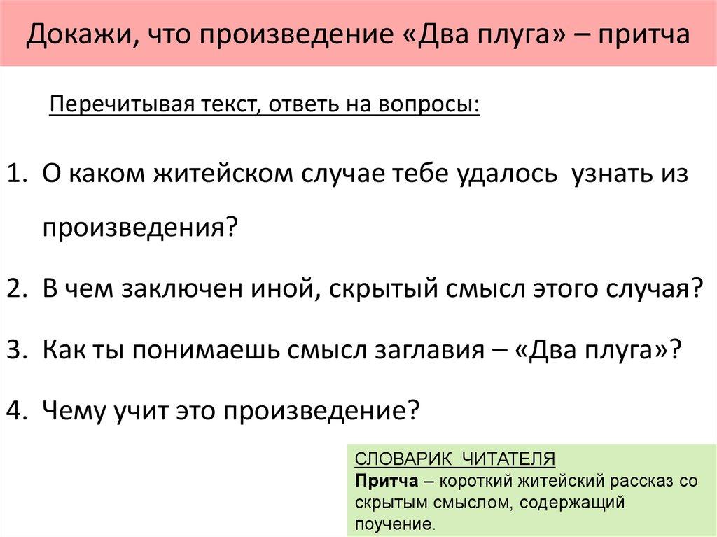 3. Как ты понимаешь смысл заглавия – «Два плуга»?