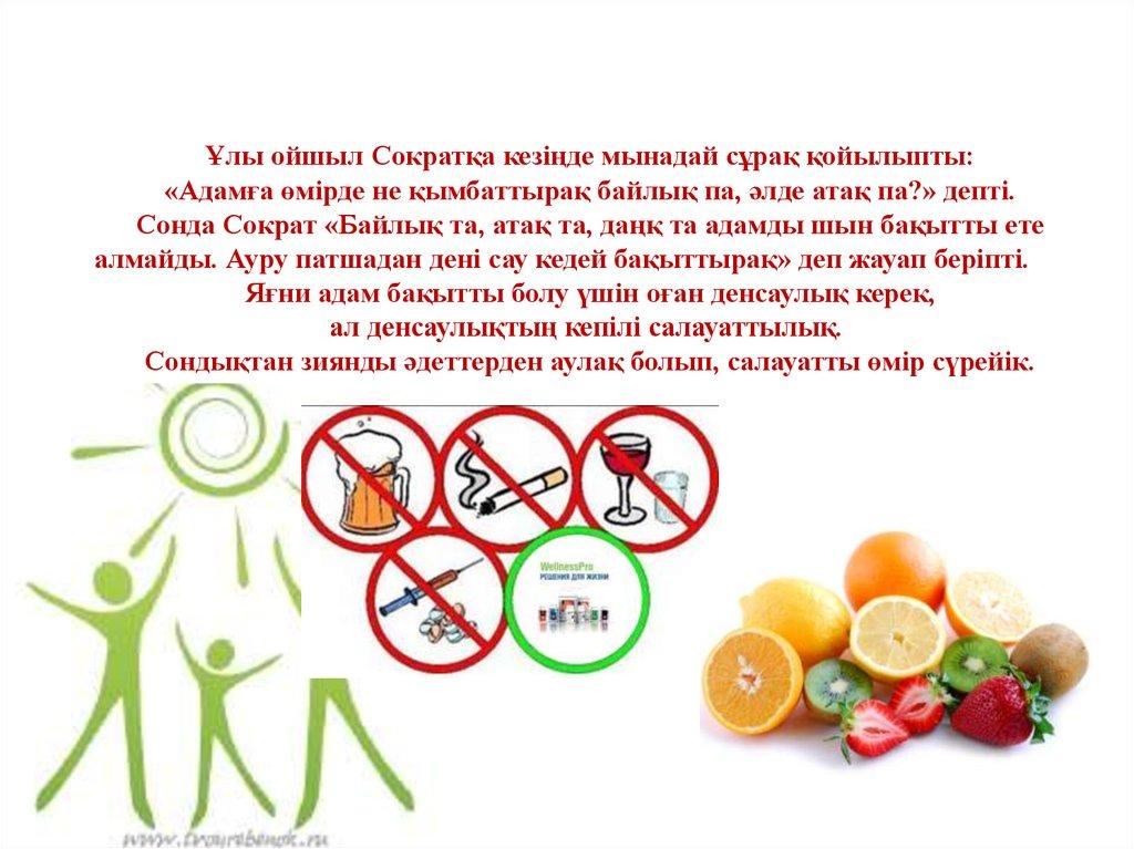 Сондықтан зиянды әдеттерден аулақ болып, салауатты өмір сүрейік.