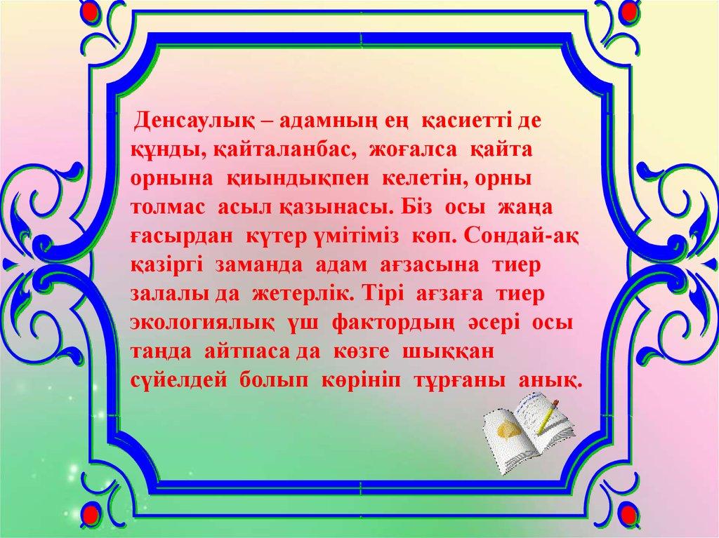 Денсаулық – адамның ең қасиетті деқұнды, қайталанбас, жоғалса қайта