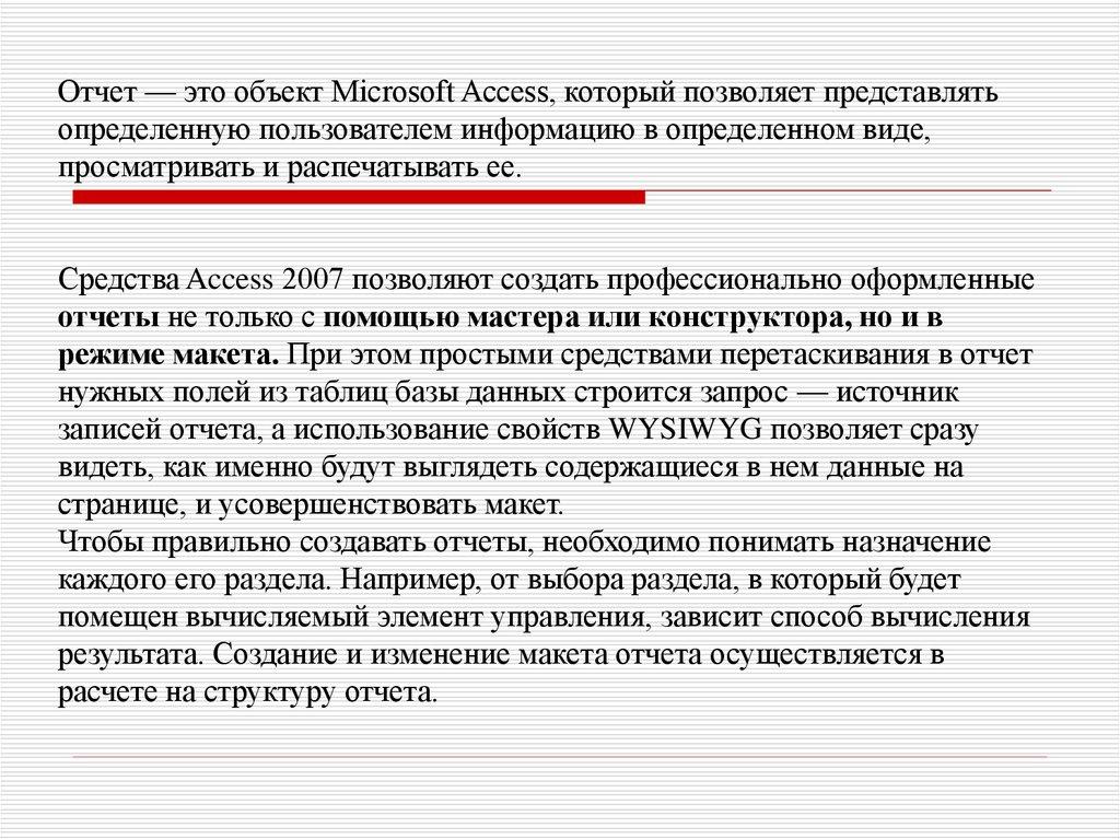на вкладках ленты или в контекстном меню. Имеющийся в Access