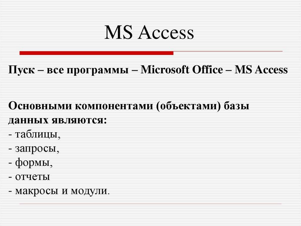 MS AccessПуск – все программы – Microsoft Office – MS Access