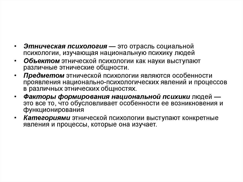 • Этническая психология — это отрасль социальнойпсихологии, изучающая национальную психику людей
