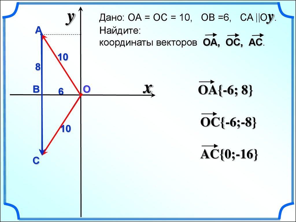 Дано: ОА = ОС = 10, ОВ =6, СА Оy.