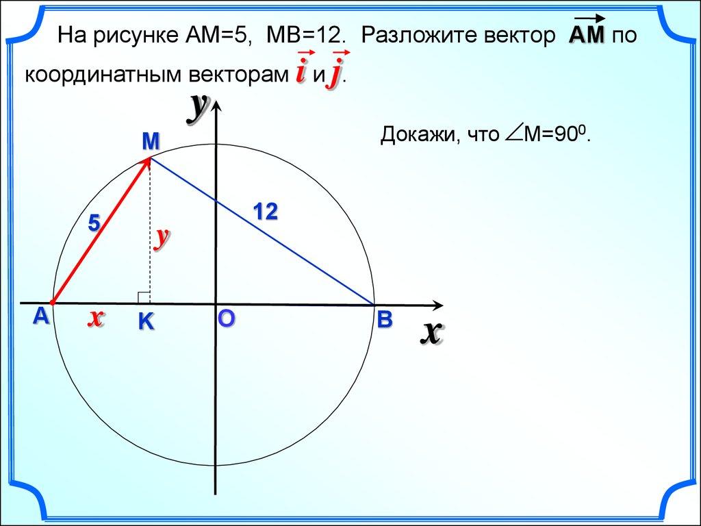 На рисунке АМ=5, МВ=12. Разложите вектор АМ покоординатным векторам i и j.