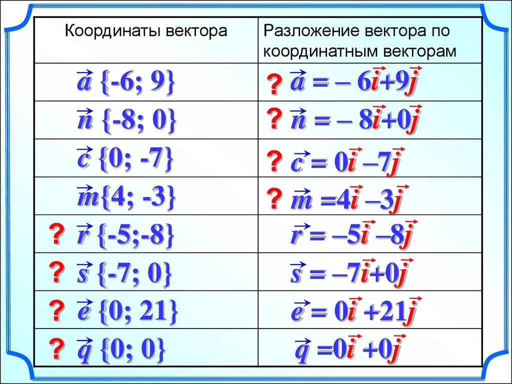 Координатны вектора. Разложение вектора по координатным векторам