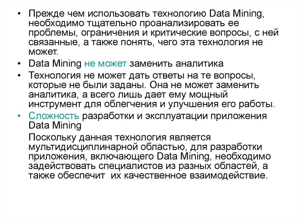 • Суть и цель технологии Data Mining можно