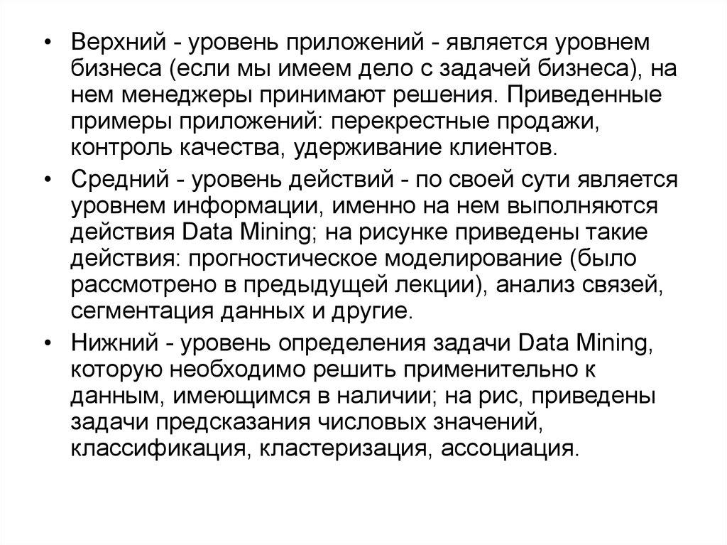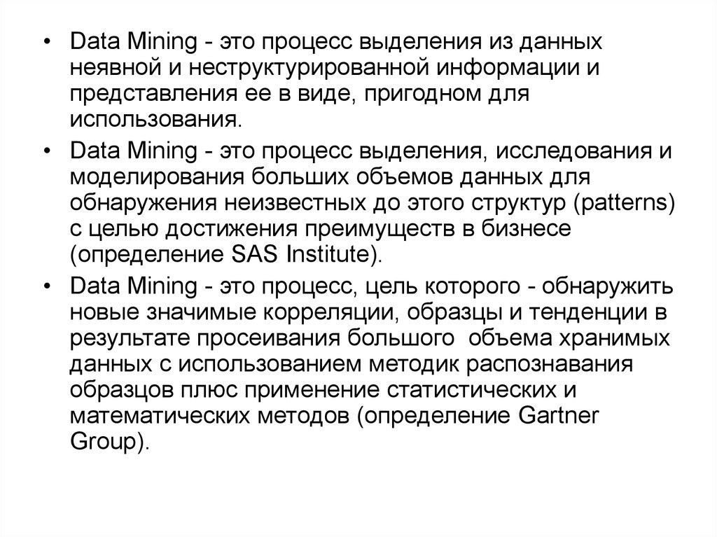 • Data Mining - это процесс выделения из данныхнеявной и неструктурированной информации и