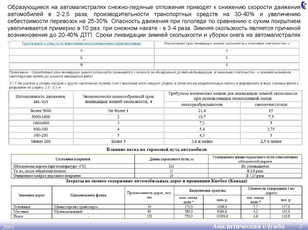 возникновения до 20-40% ДТП. Сроки ликвидации зимней скользкости и уборки снега на автомагистралях