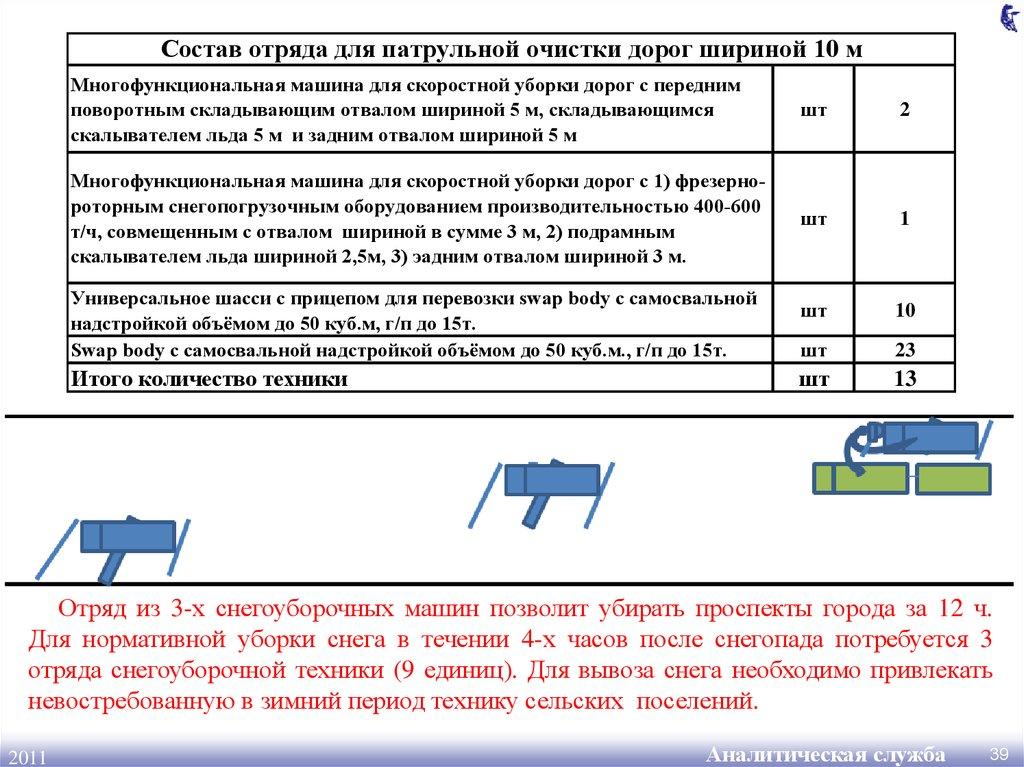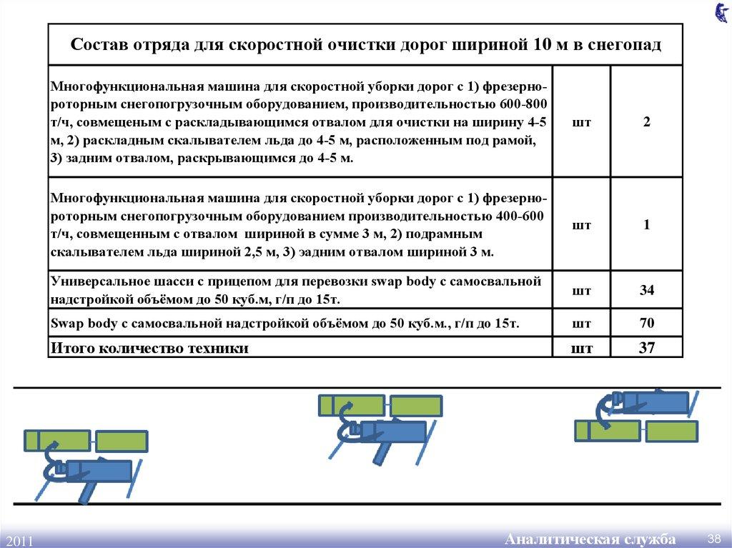 Состав отряда для скоростной очистки дорог шириной 10 м в снегопад2011