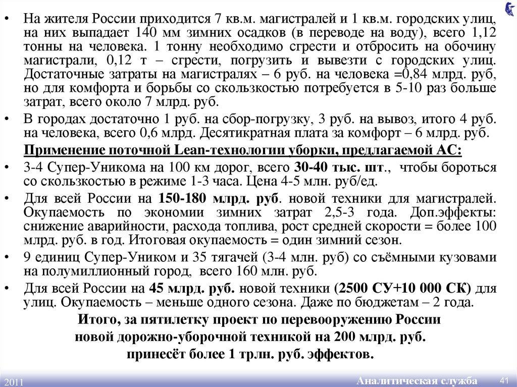 • 3-4 Супер-Уникома на 100 км дорог, всего 30-40 тыс. шт., чтобы бороться