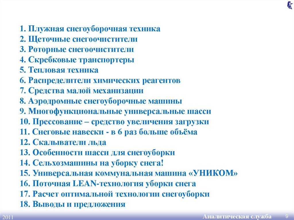 отряда снегоуборочной техники (9 единиц). Для вывоза снега необходимо привлекать