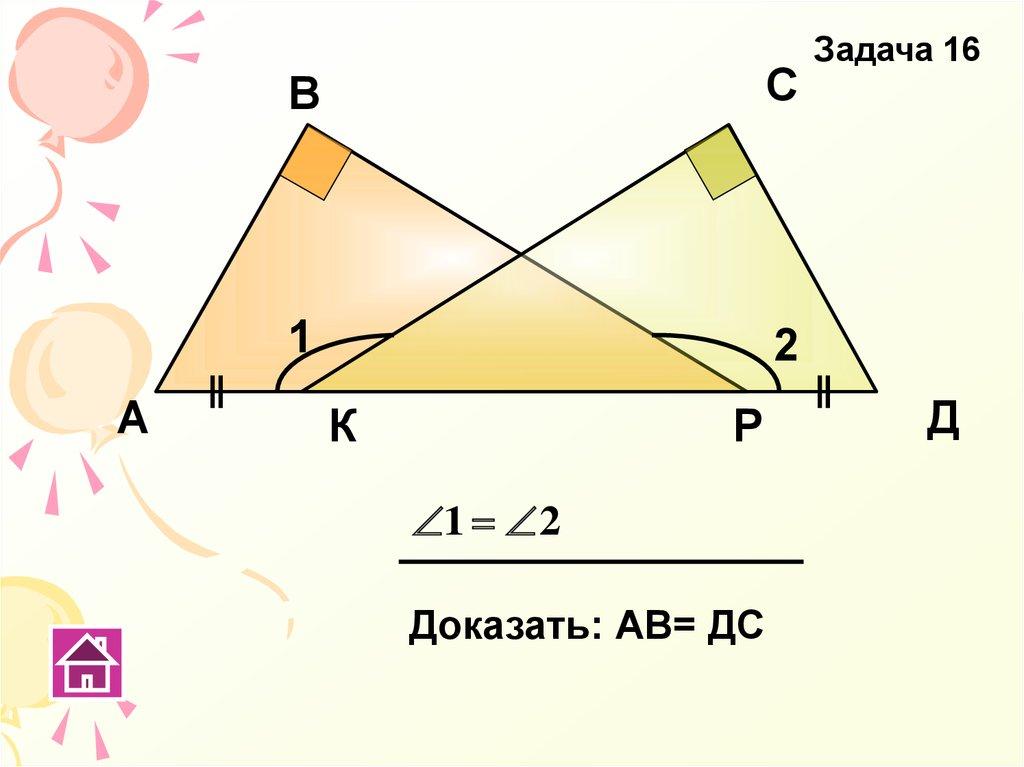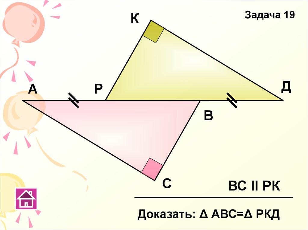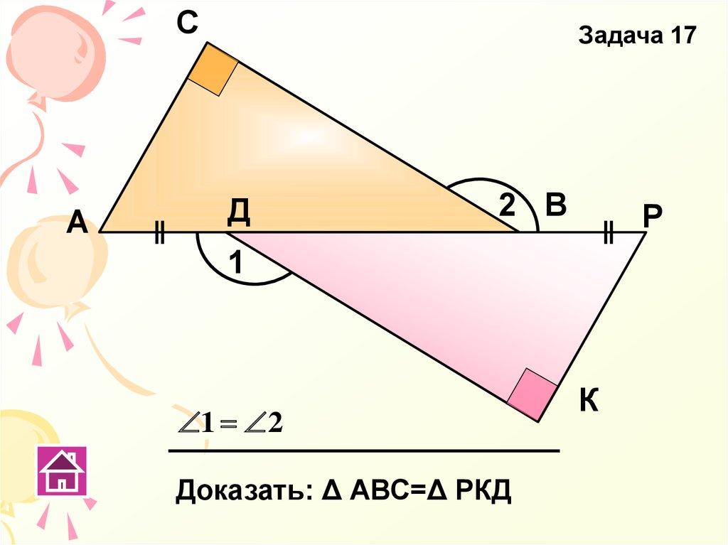 Доказать: Δ АВС=Δ РКД