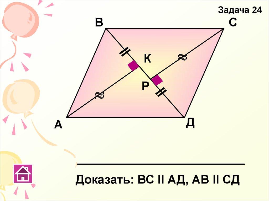 Доказать: ВС ΙΙ АД, АВ ΙΙ СД