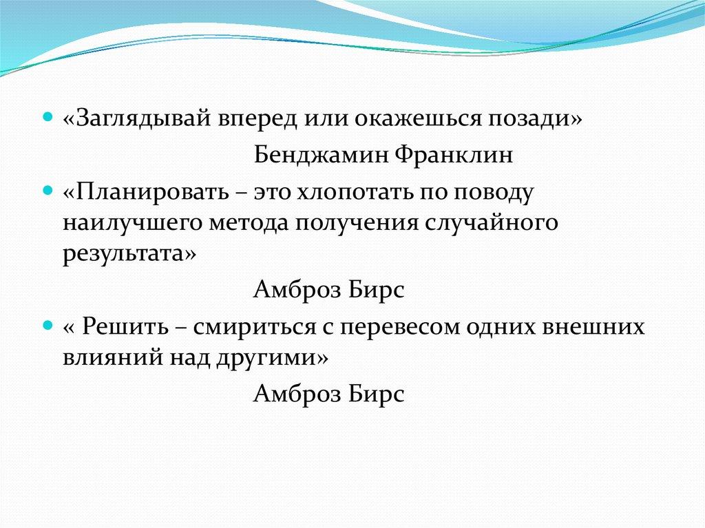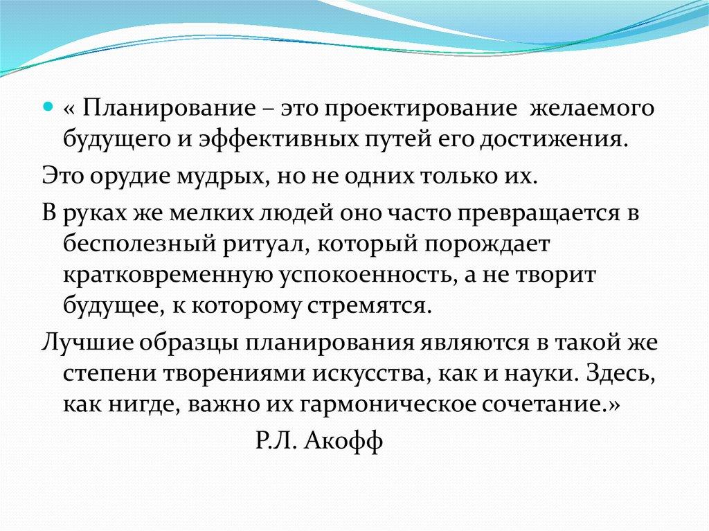 « Планирование – это проектирование желаемогобудущего и эффективных путей его достижения.