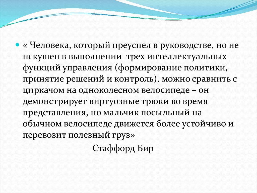 « Человека, который преуспел в руководстве, но неискушен в выполнении трех интеллектуальных