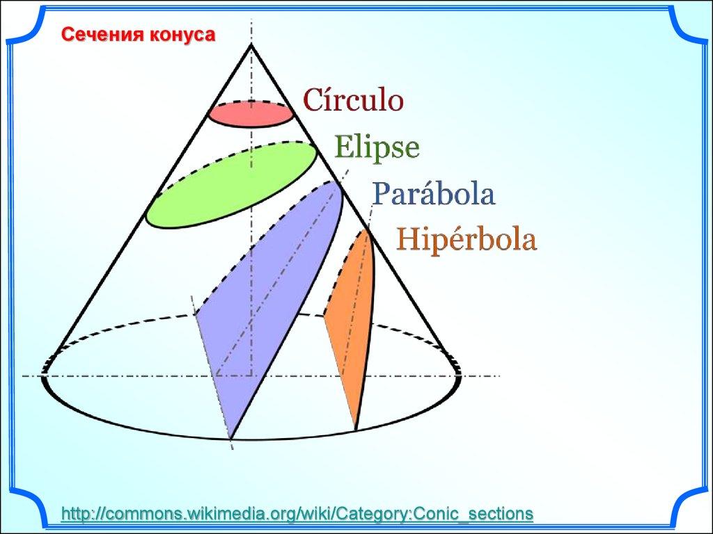 Сечения конусаhttp://commons.wikimedia.org/wiki/Category:Conic_sections