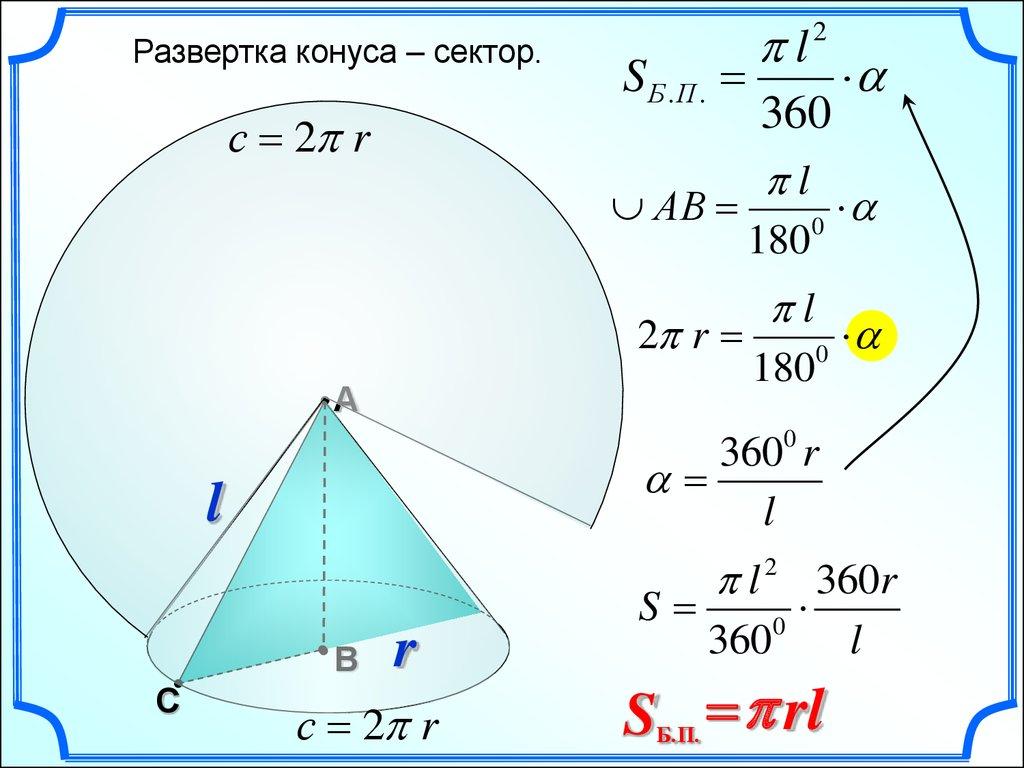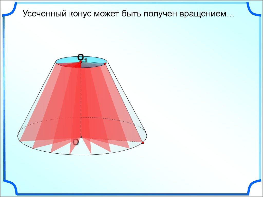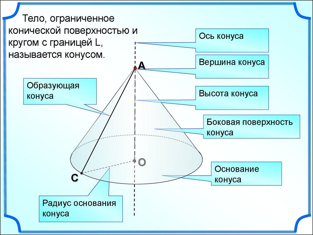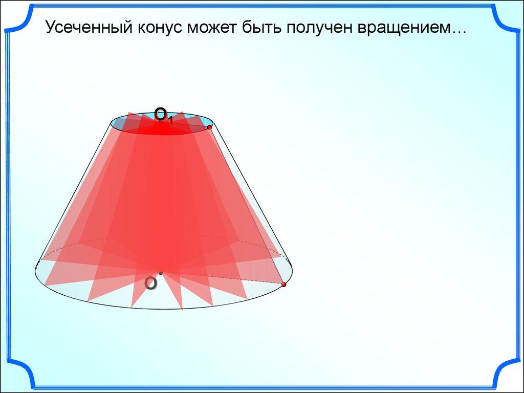 Конус может быть получен путем вращения равнобедренноготреугольника вокруг его высоты, опущенной на основание.