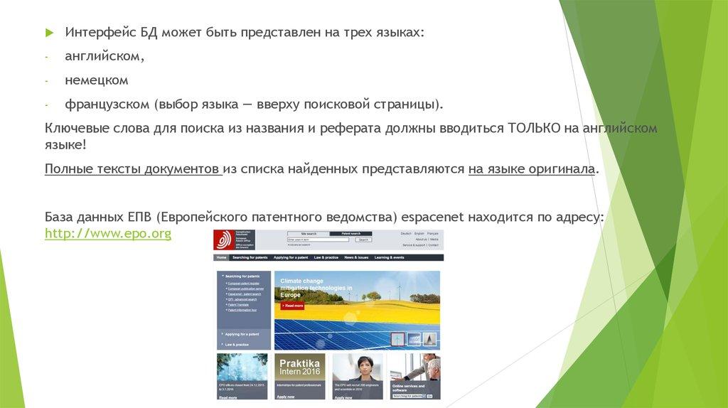 14. БАЗА ДАННЫХ ЕВРОПЕЙСКОЙ ПАТЕНТНОЙ ОРГАНИЗАЦИИ