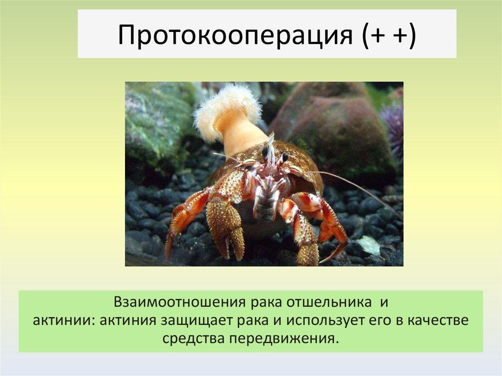 Протокооперация (+ +)Взаимоотношения рака отшельника и