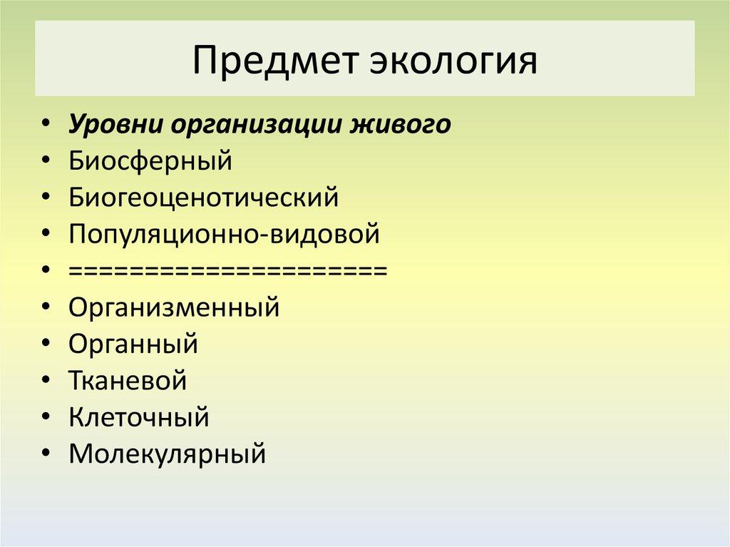 3. Предмет экология
