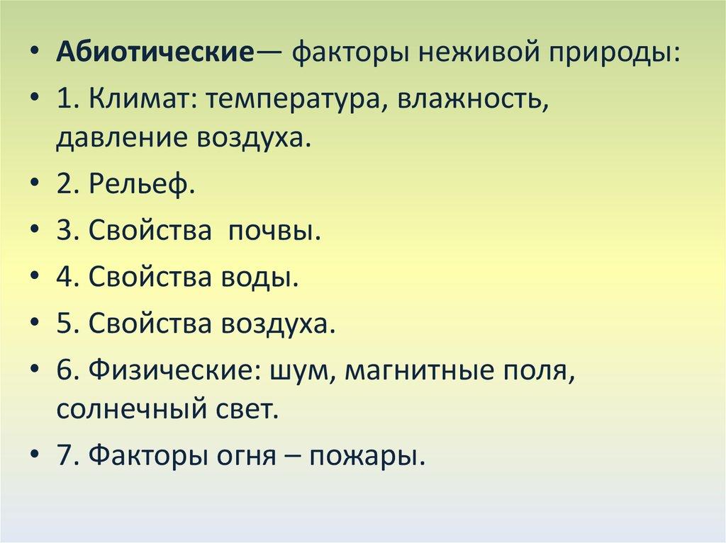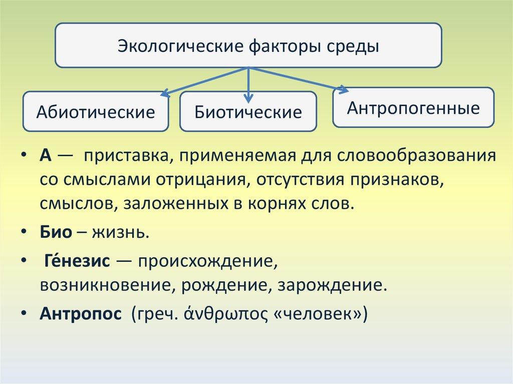 Экологические факторы средыАбиотические