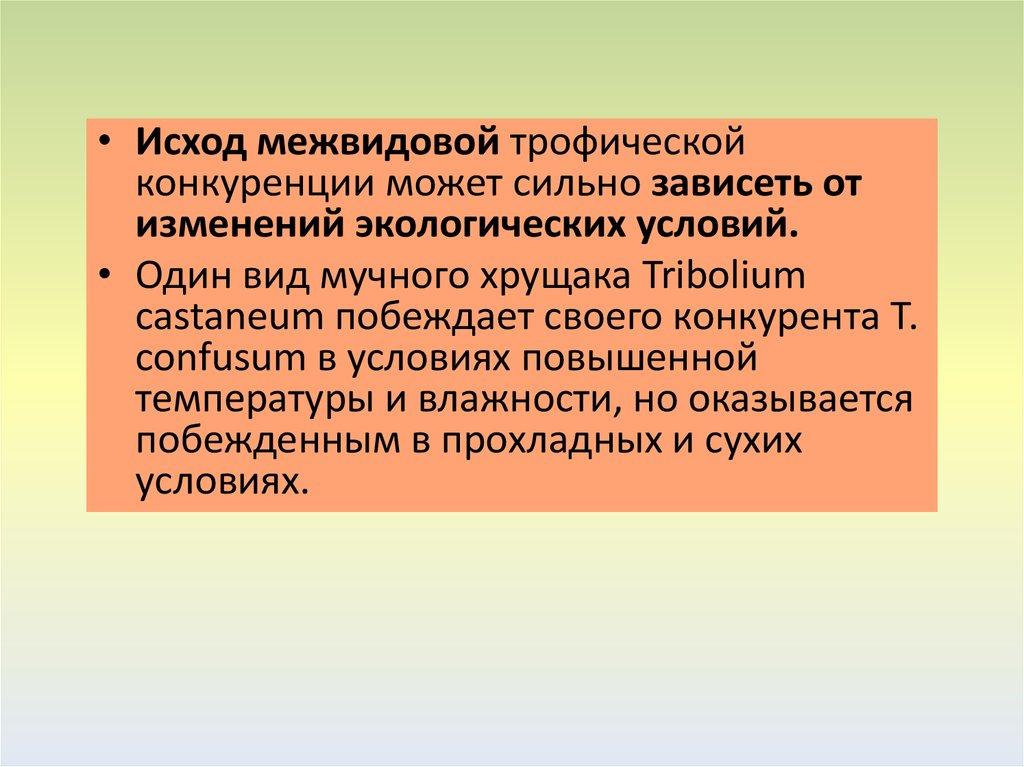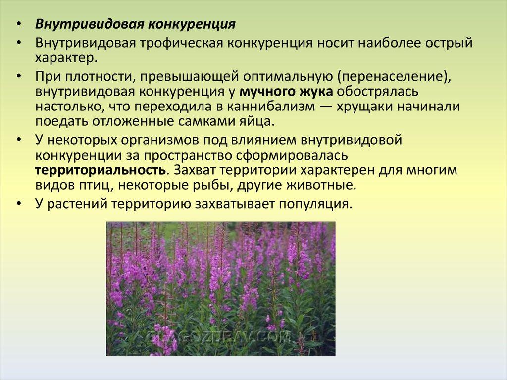 • Внутривидовая конкуренция• Внутривидовая трофическая конкуренция носит наиболее острый