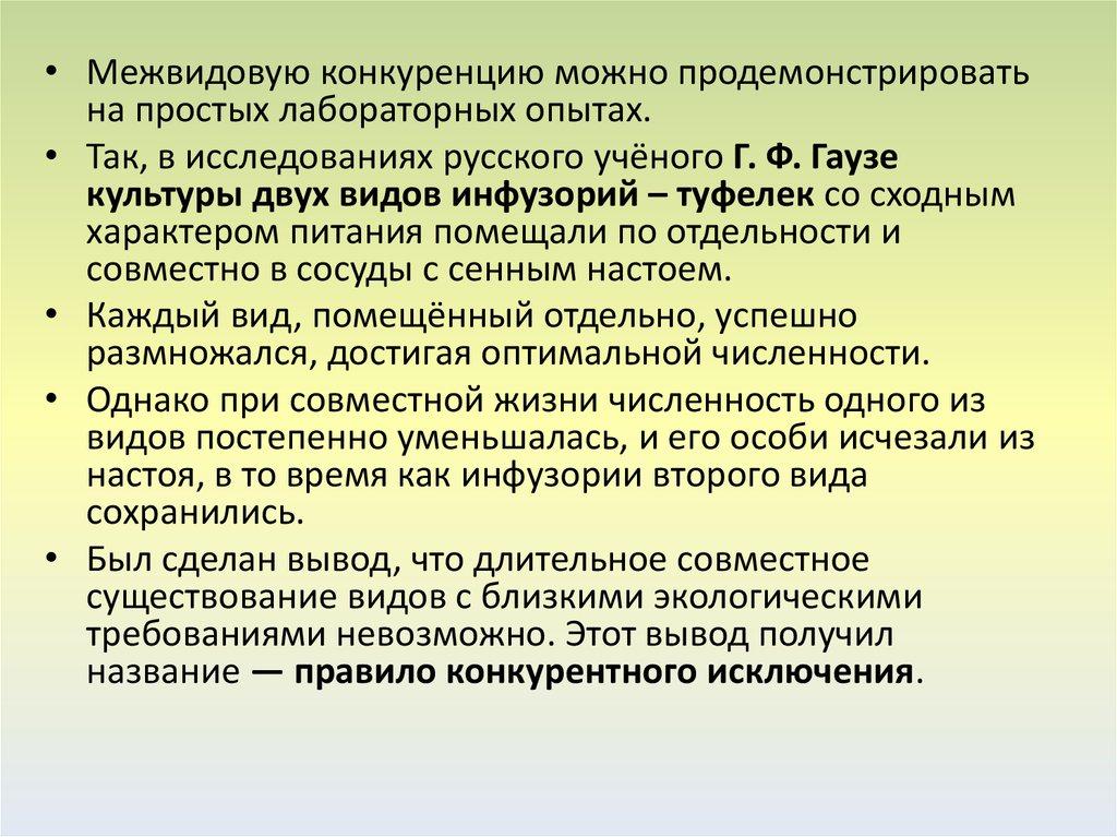 конкурентному исключению особей.